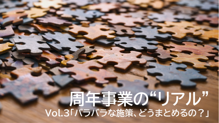 ADEX 一気通貫のコンセプトが施策を統合する 周年事業の”リアル” Vol.3「バラバラな施策、どうまとめるの?」 INTRODUCTIONS SPECIAL OUR-SERVICE ADEX紹介 ADEX ブランディング 周年・記念 2026/03/23