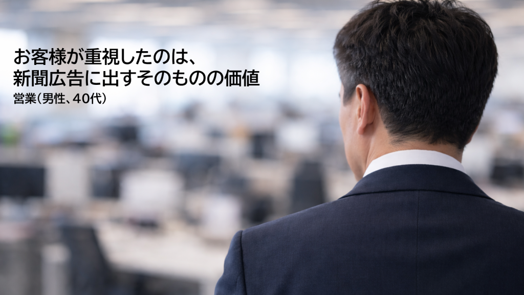 取材から見えたのは、新聞広告が最も活躍するのは、「企業の格式を伝える必要がある場面」であるということです。株主向けのメッセージ、地域社会への大きな約束、業界内での自社の立場を示すなど、単なる商品認知ではなく、「企業そのもの」を伝える場面で、新聞広告は強力な武器となります。