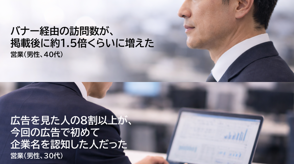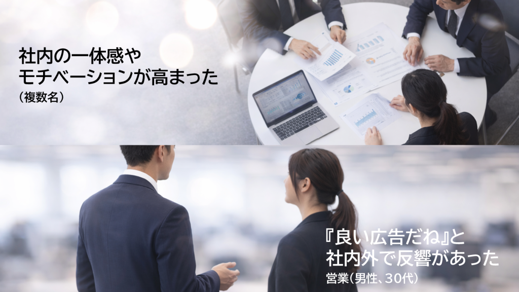 別のサービス業企業でも、「周年を契機に日経新聞を出したい」という社長の希望から、新聞広告へのチャレンジが始まりました。この企業では、広告出稿が「効果が高い」と評価され、さらに「社内の一体感やモチベーションが高まった」という副次的な効果も生まれています。新聞広告が単なる認知手段ではなく、社員のモチベーション向上にも寄与することは注目に値します。