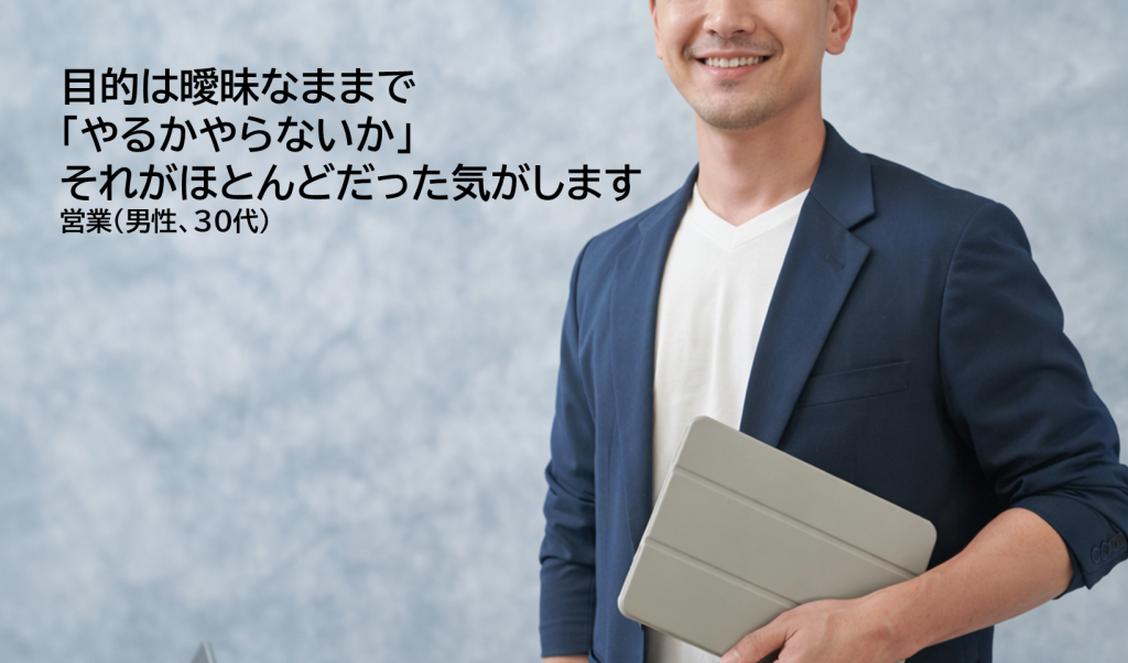 共通するのは全体像と目的が定まらないまま、施策が進行しているという点です。