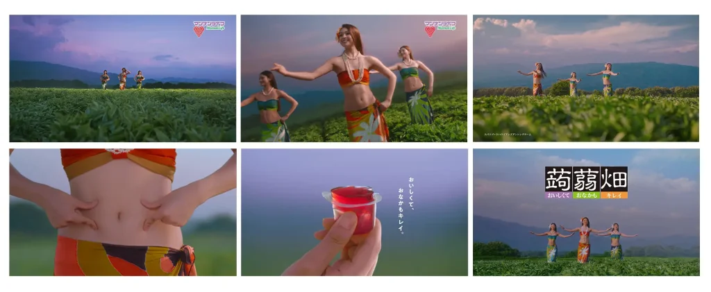 両社のコラボレーションは2023年から始まり、WEB動画やサンプリングイベントなどで話題を集めてまいりました。そして3年目となる今年は、ついにTVCMとしてテレビ放送を開始。蒟蒻畑が持つ「おいしくて おなかも キレイ」というブランドメッセージを、フラダンスの情熱とともに全国へお届けいたします。