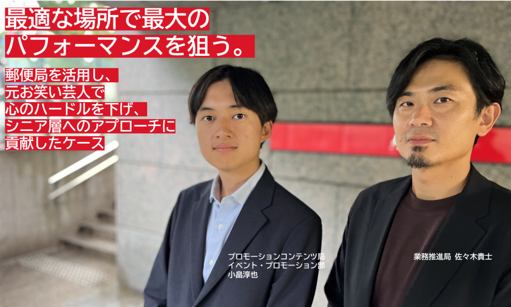 最適な場所で最大のパフォーマンスを狙う。| 郵便局を活用し、元お笑い芸人で心のハードルを下げ、シニア層へのアプローチに貢献したケース